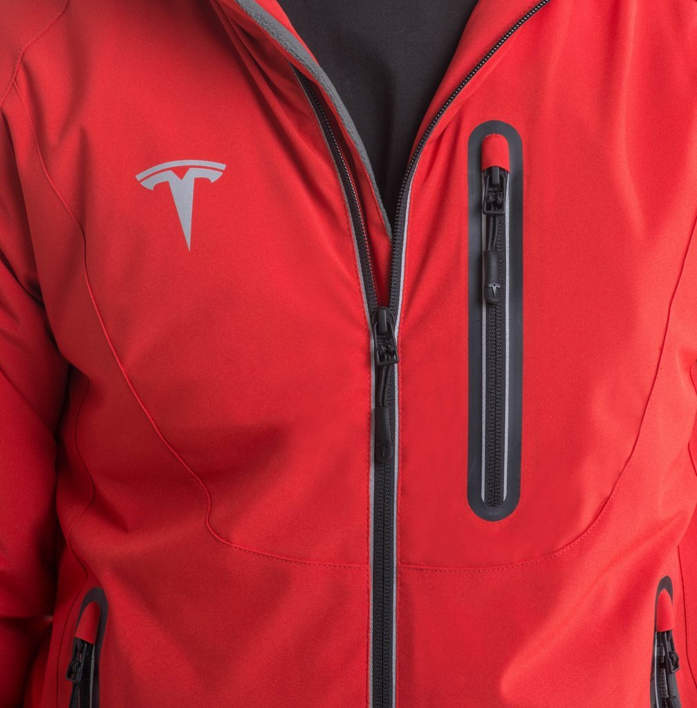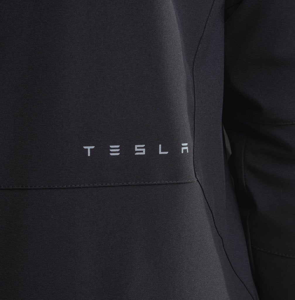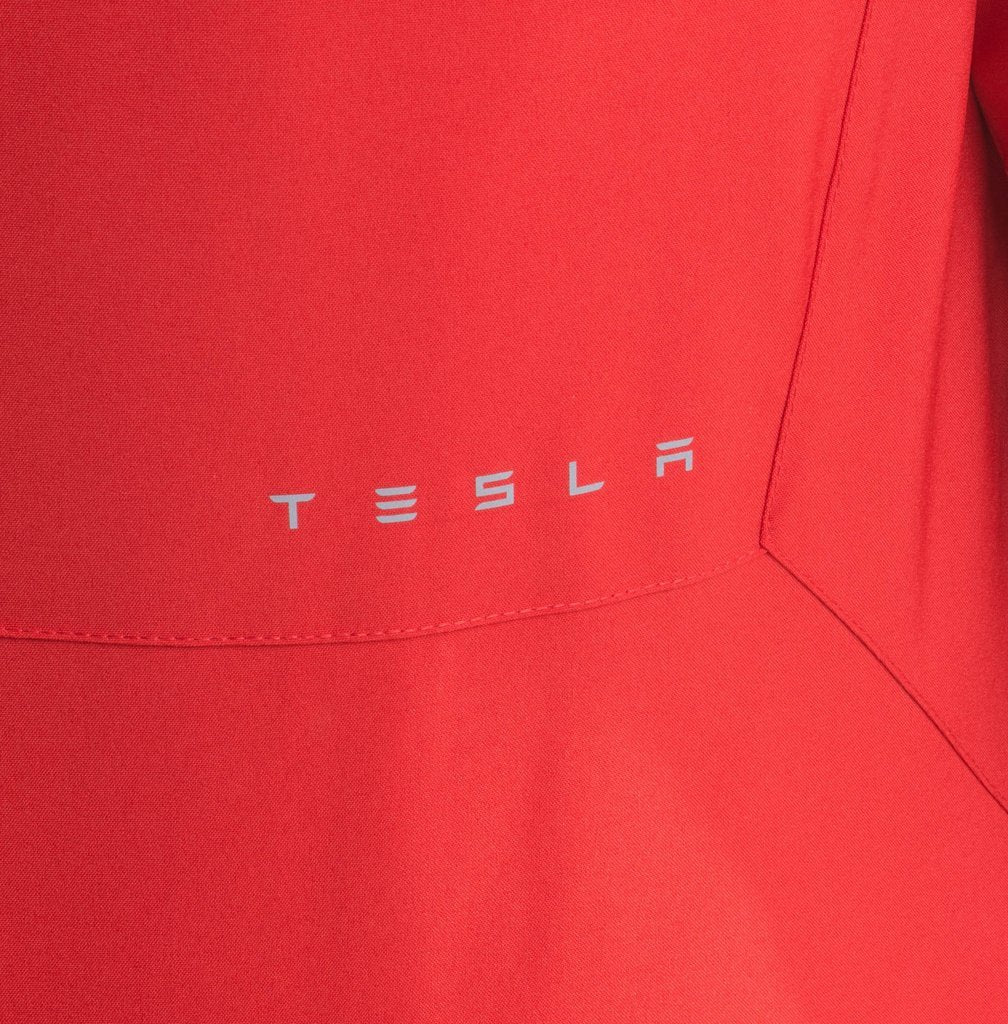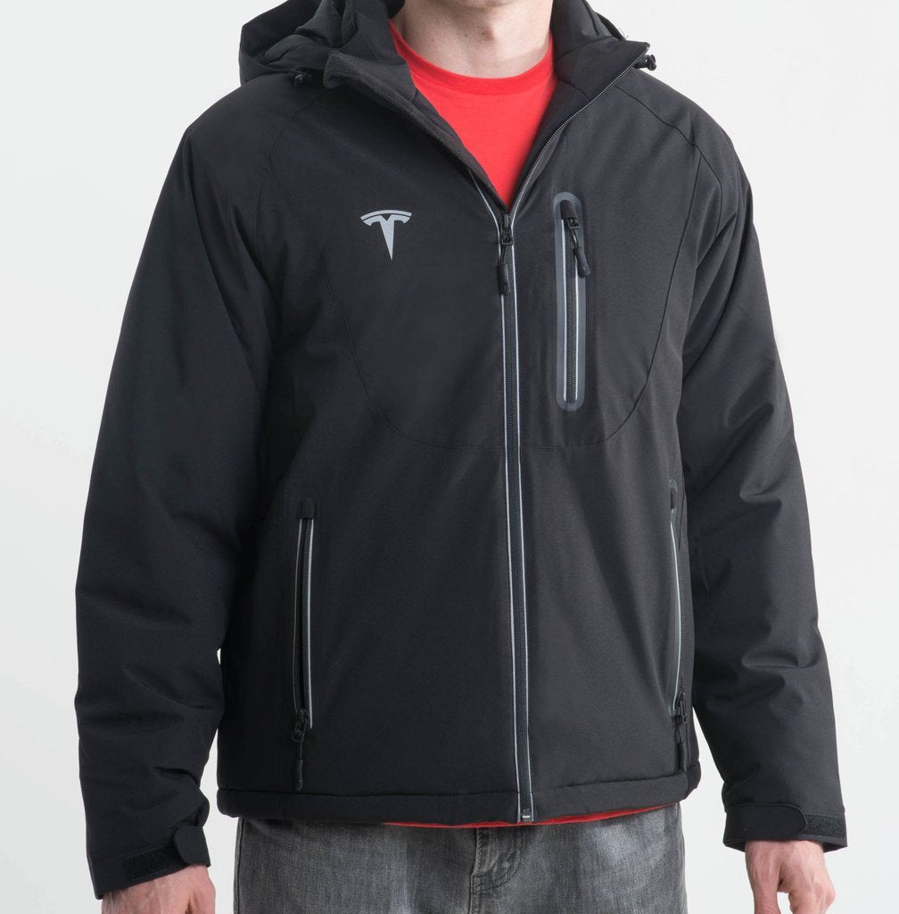 Stay warm and dry in this wind and water resistant jacket, perfect for cool and rainy climates. Designed for high activity, this Thermolite Active-insulated jacket is 94% polyester and 6% spandex, with a detachable hood. Reflective Tesla logos are printed on the front and back of the jacket, with a reflective stripe on the center front zipper closure and pockets. Custom logo ‘T’ zipper. Zip chest pocket with hand-warming liners and bonded tape styling. Adjustable drawstring system at hem. MP3 cord holder.