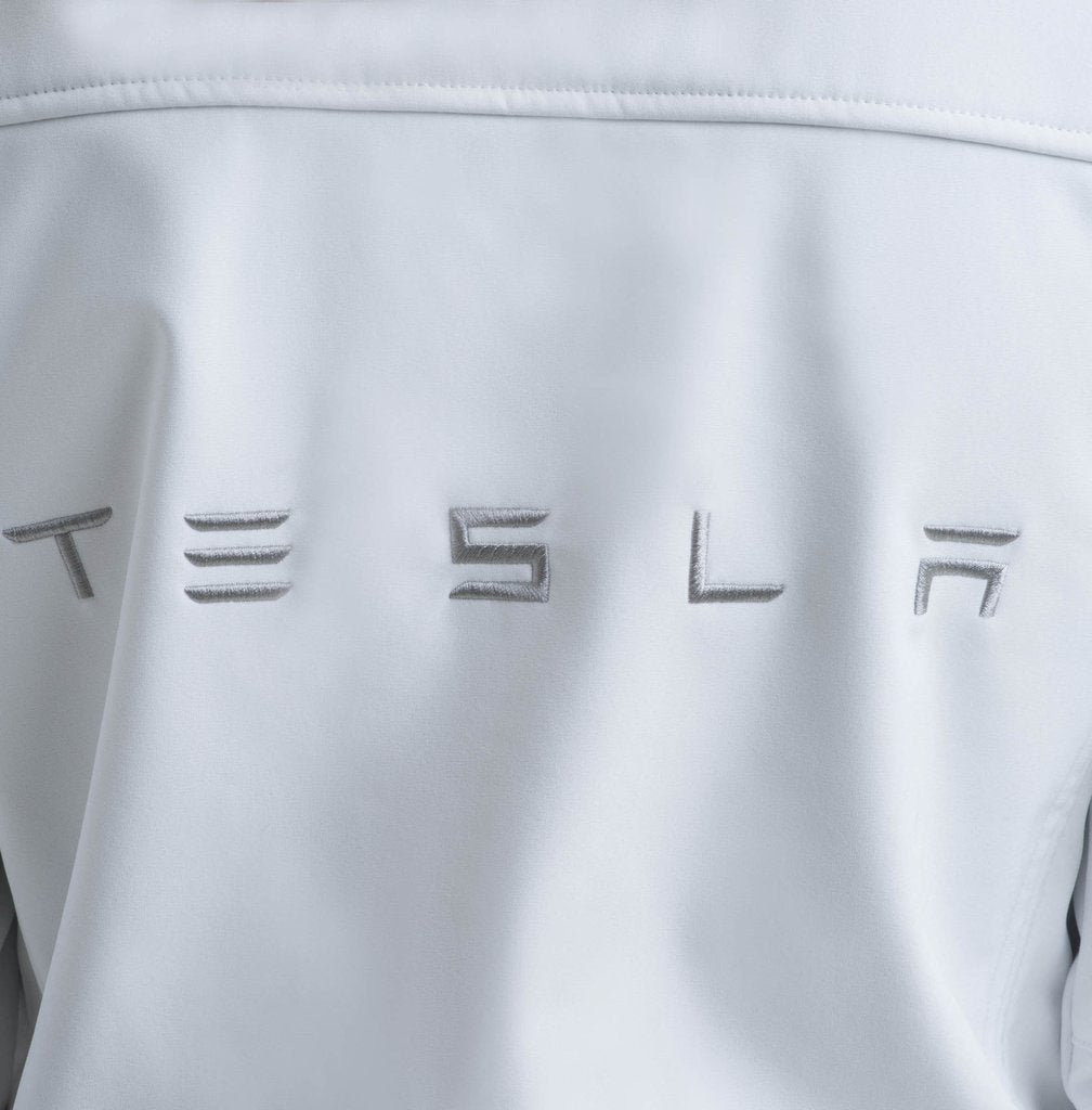 The Tesla Corp jacket is fully customized and uniquely styled. 94% polyester 6% elastane, this jacket has the front 'T' embroidered on left chest and 'TESLA' embroidered across the back. Center front closure with storm flap. Custom logo 'T' zipper pulls, zip chest pocket with bonded tape styling. Adjustable drawstring system at hem, MP3 cord holder and inside pocket.